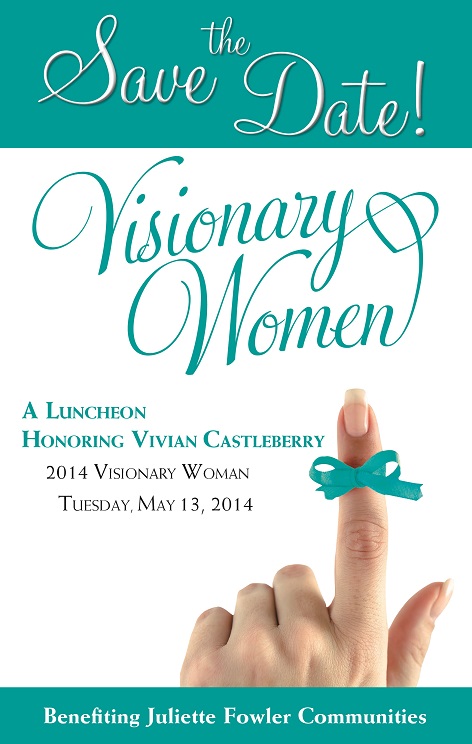 The Visionary Women luncheon celebrates the vision of Juliette Peak Fowler and honors individuals who embody her compassionate spirit and who use their visionary leadership and remarkable gifts to make a difference in our world. All proceeds will benefit Juliette Fowler Communities One Heart fund.