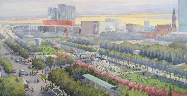 Finally! The much anticipated Opening Weekend of Klyde Warren Park has arrived. Located deep in the heart of Dallas, TX above Woodall Rodgers Freeway between Pearl and St. Paul streets, the park will add a welcoming and beautiful site to downtown. The park, spanning 5.2 acres, will feature a Performance Pavilion, Walking trails, Dog park, Children’s area, Games area, and Restaurant. Throughout the year, the park will provide daily free programming from the public, including sessions of yoga, outdoor concerts, yoga, and more.